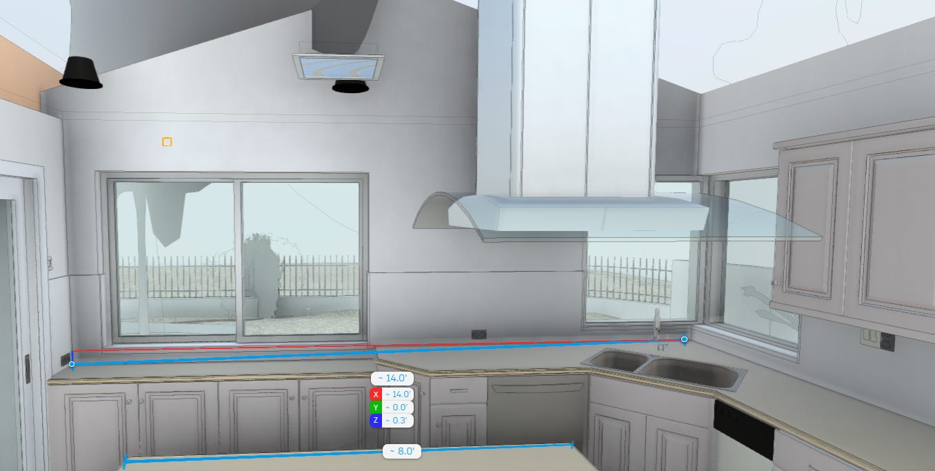 Scan-to-BIM resolves this. Not only can you get exacting details within up to 2 mm of accuracy (no measurements required and no crappy handwriting to decipher), but you also get every detail mentioned above and more. Now, we know how many can lights, switches, and receptacles are in the home and their exact locations. Now we know within 1/2 inch of accuracy where the existing walls and their thicknesses, ceilings, doors, and windows are. Now we know where the current systems and risers are, so we understand how and where water, power and gas come into the home today.
